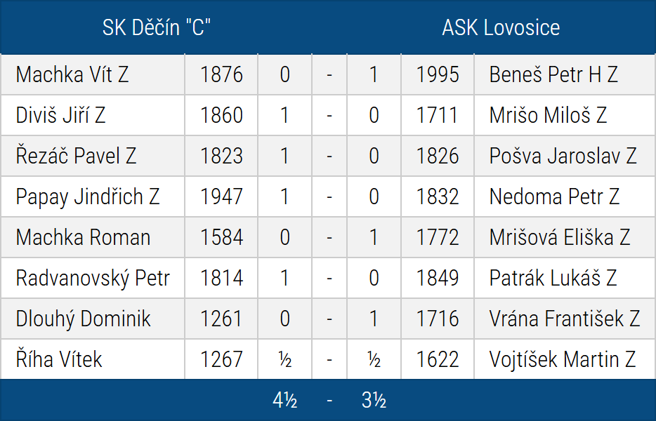 Vážení šachoví nadšenci, vítejte na stránkách děčínského šachového klubu SK Děčín, kde Vás pravidelně informujeme o naší činnosti.