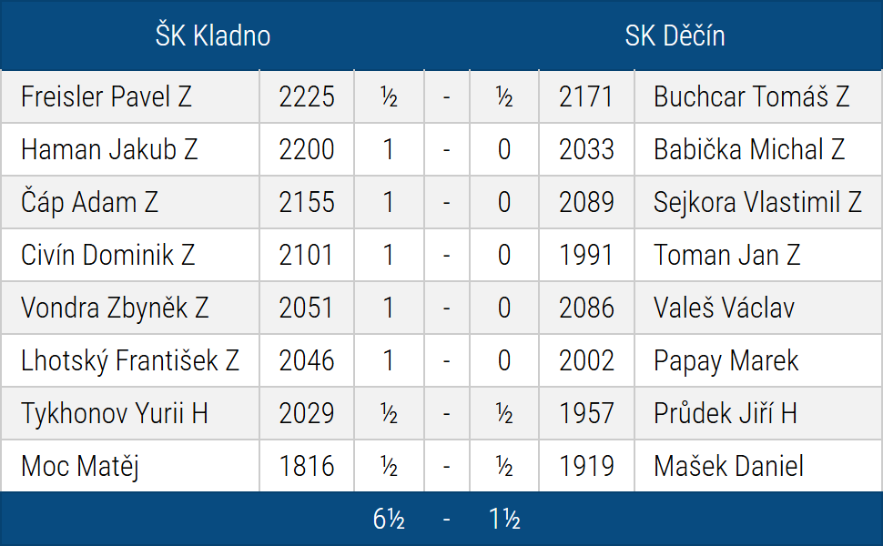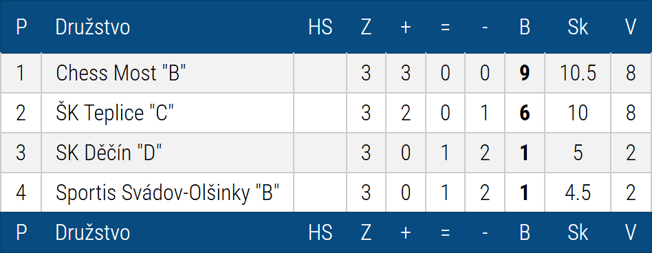 Průběžné pořadí a výsledky na stránkách chess.cz